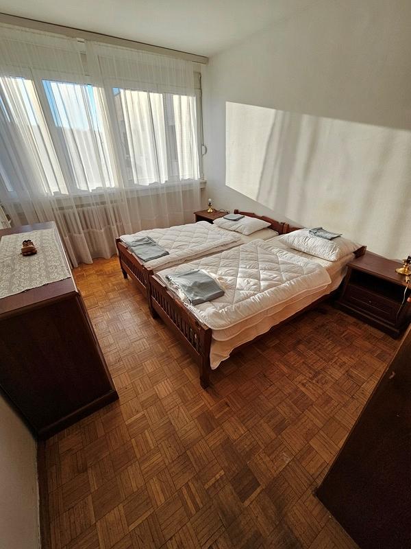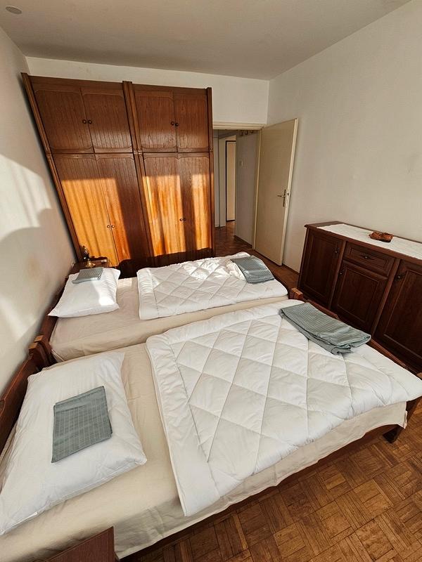 Prostorije: Dnevna soba, hodnik, kuhinja sa trpezarijom, dve spavace sobe, kupatilo i terasa.