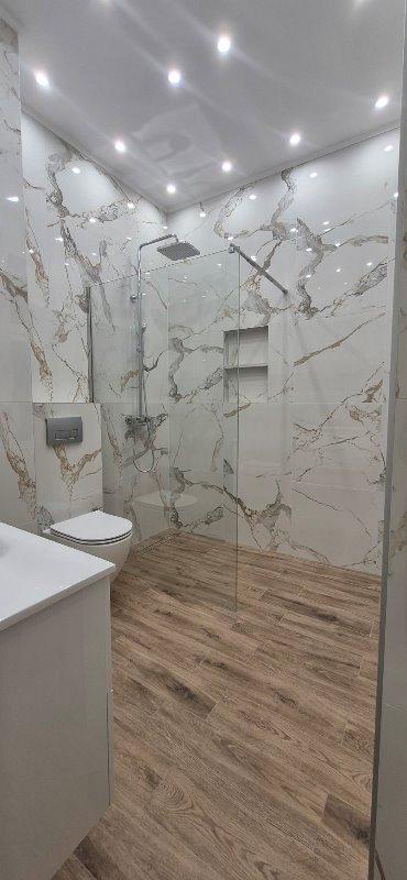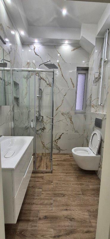 Dva toaleta, kuhinja, i dodatni deganzmani u vidu dodatnog prostora za odlaganje i skladistenje.